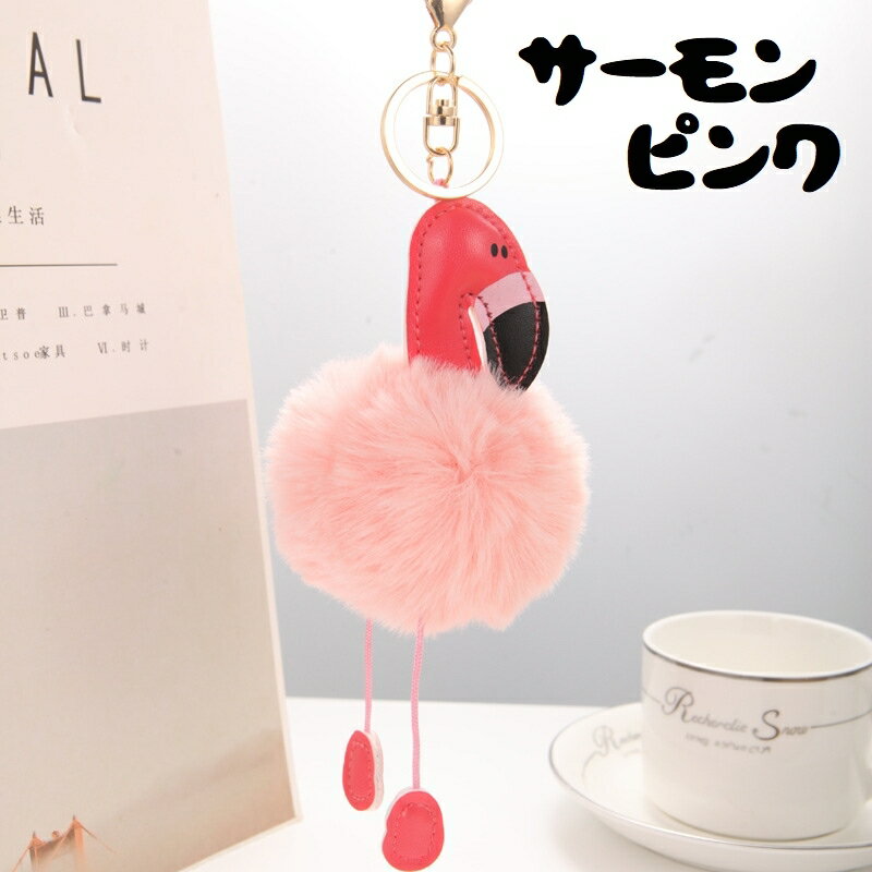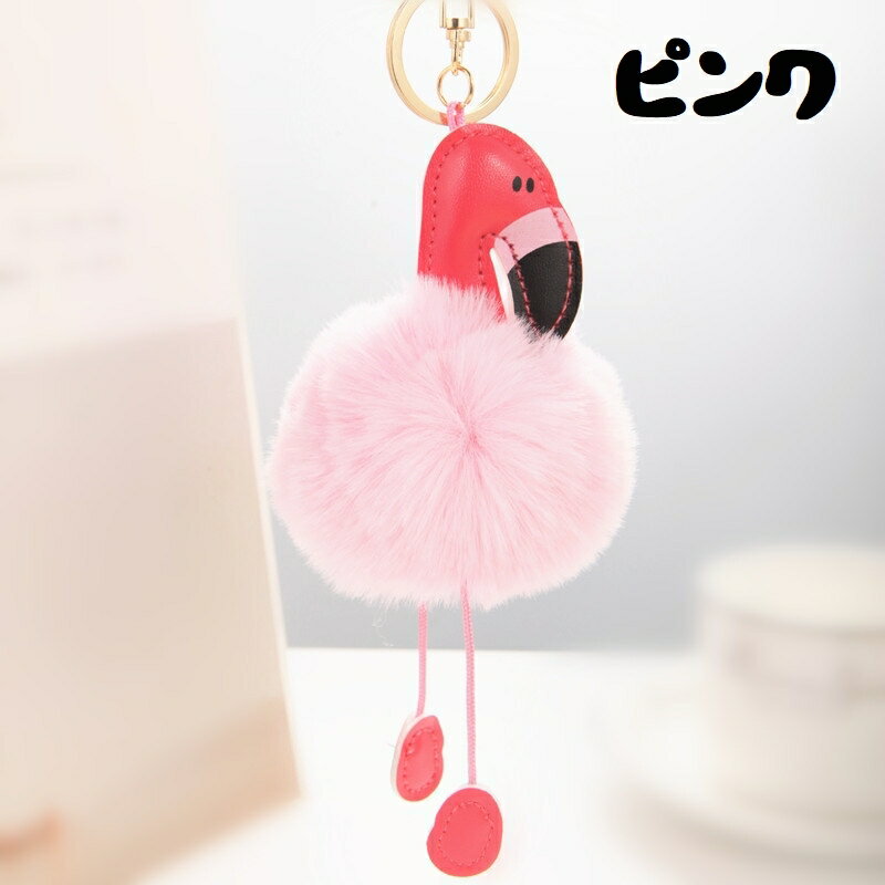 送料無料キーホルダー ペンダント フラミンゴ ボンボン 可愛い おしゃれ 大人 キッズ 子供 リング フェイクレザー 車 装飾 カー ギフト プレゼント 贈り物