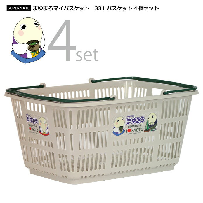 ★まゆまろグッズ【キャラカゴ】買い物カゴ まゆまろ 33Lバスケット4個セット| 買い物かご バスケット スーパー おしゃれ ショッピングバスケット 業務用 ショッピング かご プラスチック レジカゴ マイバスケット